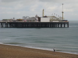 Asi každé anglické přímořské letovisko má nějaké své zábavní molo a nejinak tomu je i v Brightonu. Zde prý dříve bývala mola dvě, ale jedno před lety shořelo a nebylo rekonstruováno - do budoucna se však počítá na jeho místě se stavbou vyhlídkové věže (informace od naší milé průvodkyně :-) ). Palace Pier naleznete naproti Sea Life Centre a stojí na masivních dřevěných pilířích, které denodenně odhaluje a zase zakrývá moře vzdouvající se přílivem a odlivem. Na molu najdete celou řadu pouťových atrakcí (kolotoče, houpačky, centrofugy atd.) - bohužel mimo sezónu, kdy jsme tam byli my, byla většina z nich zavřená. Celoročně otevřeny jsou samozřejmě prostory s hracími automaty. Mnozí z nás si však raději v některém z četných obchůdků koupili sladké koblihy anebo anglickou specialitu - "Fish and Chips". Moře bylo pěkně studené, jak jsme to mnozí na vlastních nohách (někdy i v botách) vyzkoušeli. To moře a vlny však opravdu můžeme Britům závidět.